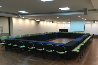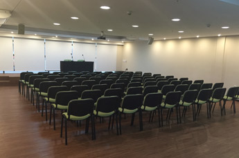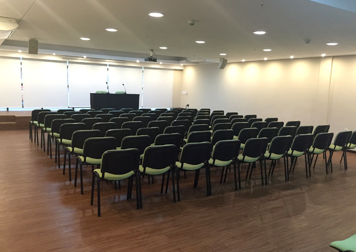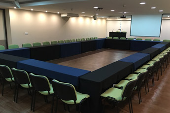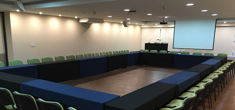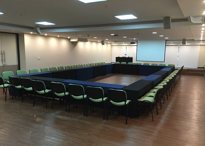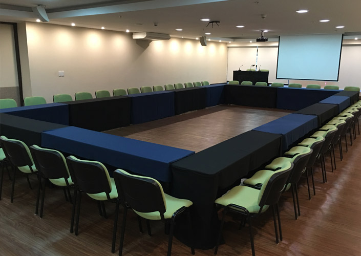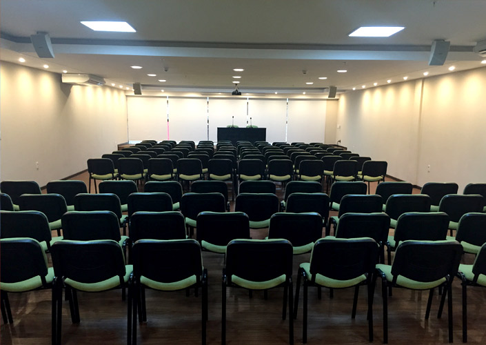 Ideal para exposiciones, work shops o presentaciones, equipada con audio, proyector y pantalla